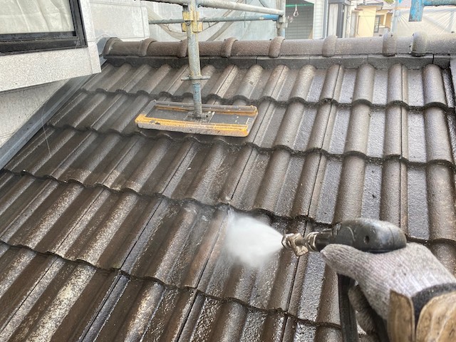 屋根や外壁の高圧洗浄を行います。
