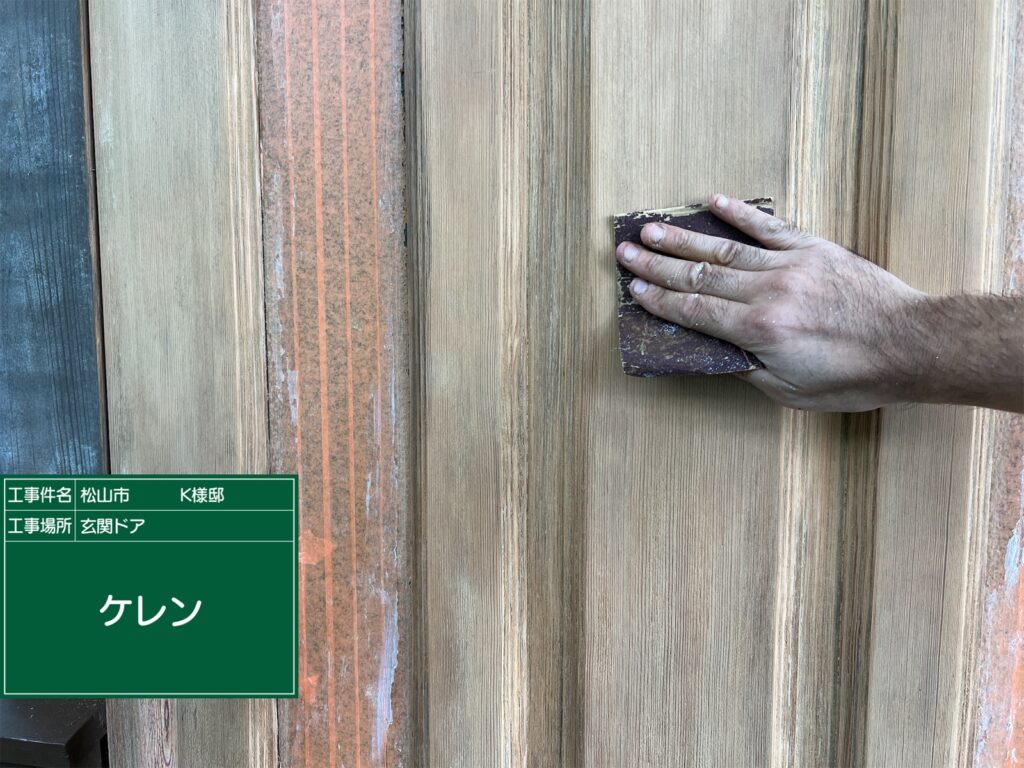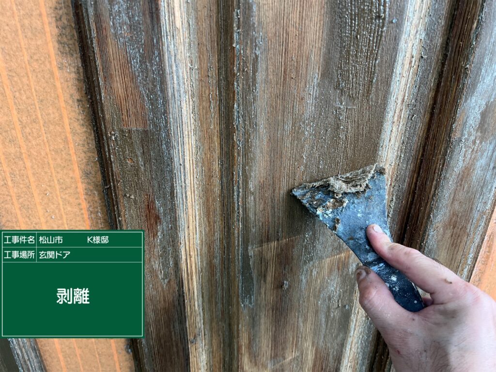 古い塗膜や劣化部分を丁寧に削り落とし、木目を整えながら表面を調整しました。