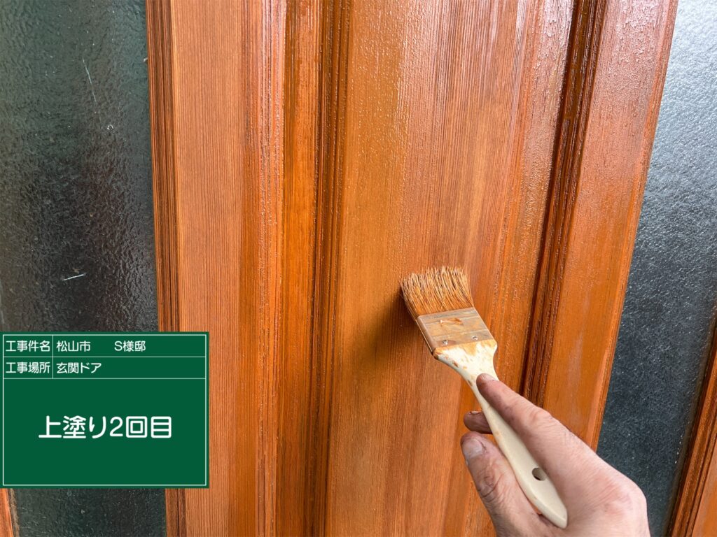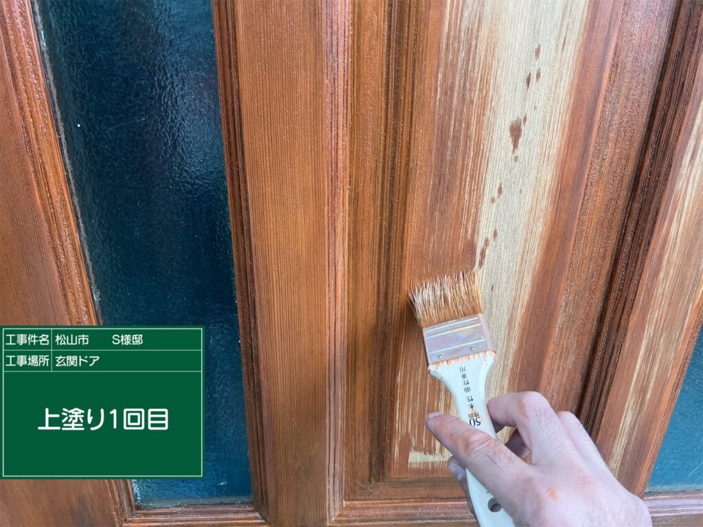 下地調整後、透明塗料を重ねることで、木目を活かしながら耐候性を高めています。