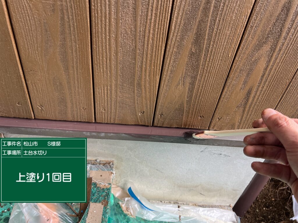 竪樋や土台水切り部分も上塗り2回で仕上げています。