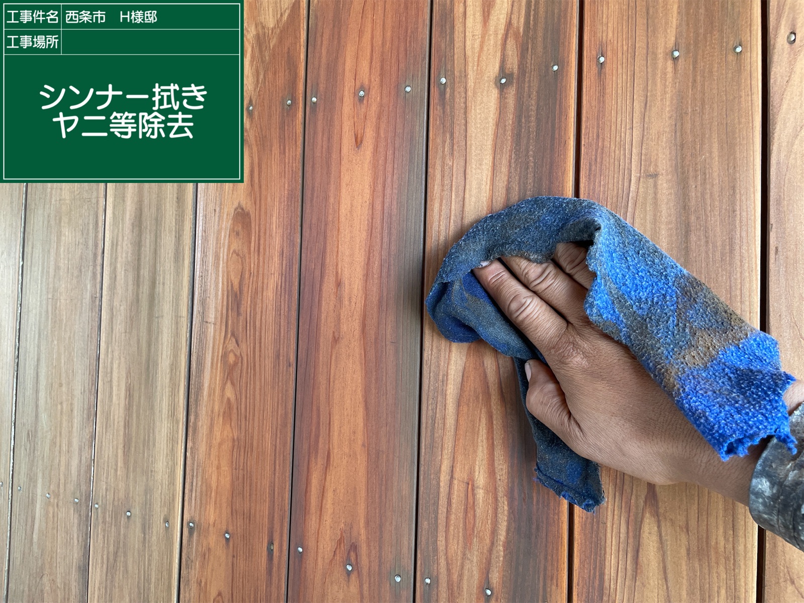 • 下地処理:サンドペーパー150番、ヤニ除去、釘頭処理
