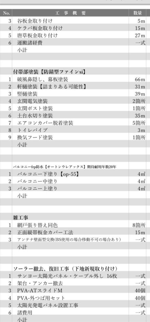 | 施工箇所 | 外壁・屋根・コーキング・ソーラーパネル |